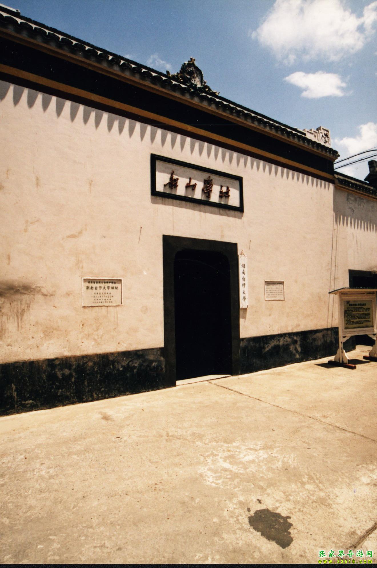 湖南自修大學(xué)舊址在中山東路263號,原為曾國藩祠的一部分。光緒初,郭嵩燾在此創(chuàng)辦思賢講舍。1912年劉人熙將其易名為船山學(xué)社。1921年8月,毛澤東、何叔衡于中共“一大”后,取得社長仇亦山,總干事王季范等同意,在此創(chuàng)辦湖南自修大學(xué),李達為首任校長。